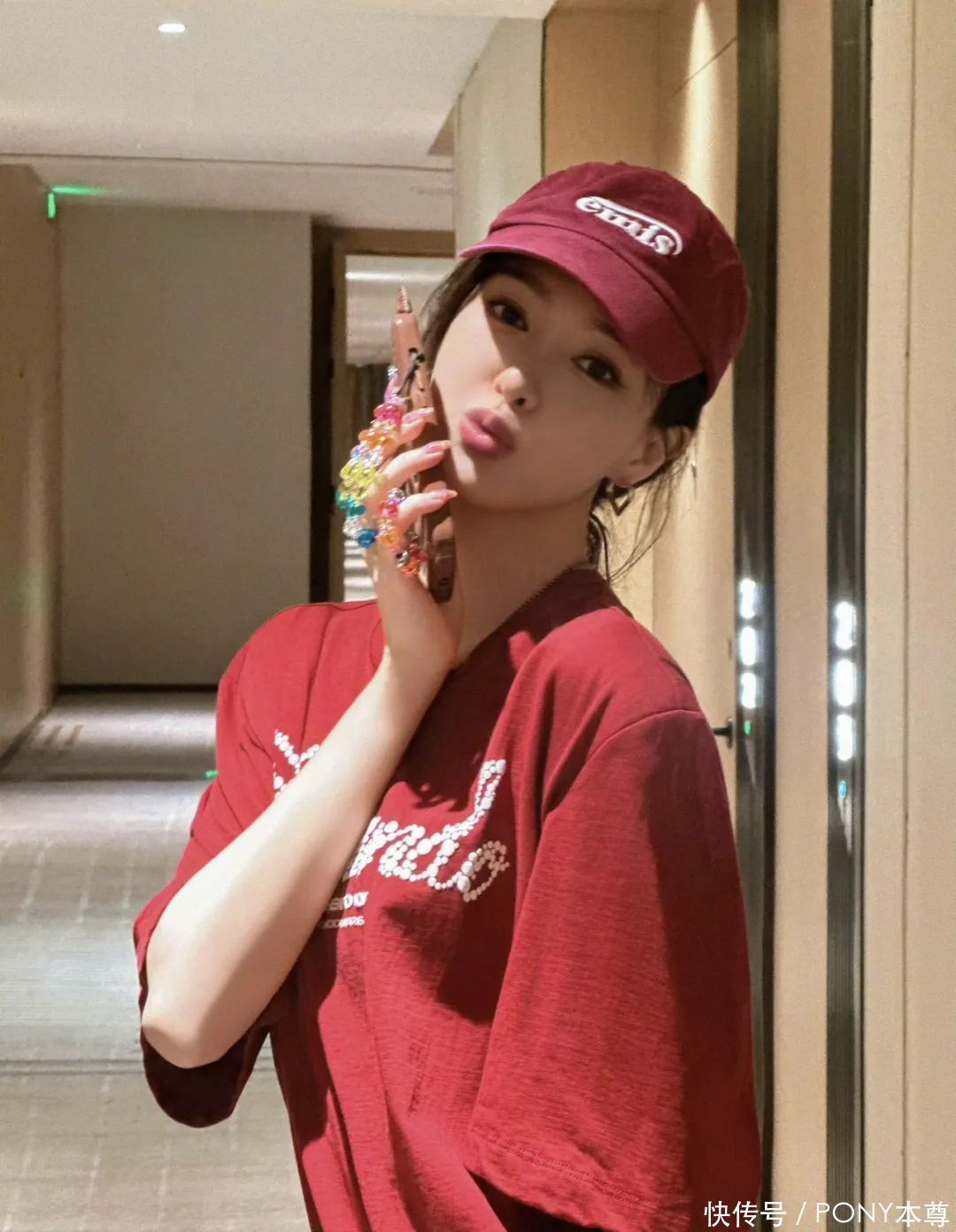 雷同的意旨道理意旨道理,红色小配饰亦然她可爱的元素!比如白色T恤搭配pu皮马甲背心,日常帅气!她在包包上搭配红色挂饰,和红唇呼应,细节亮眼!