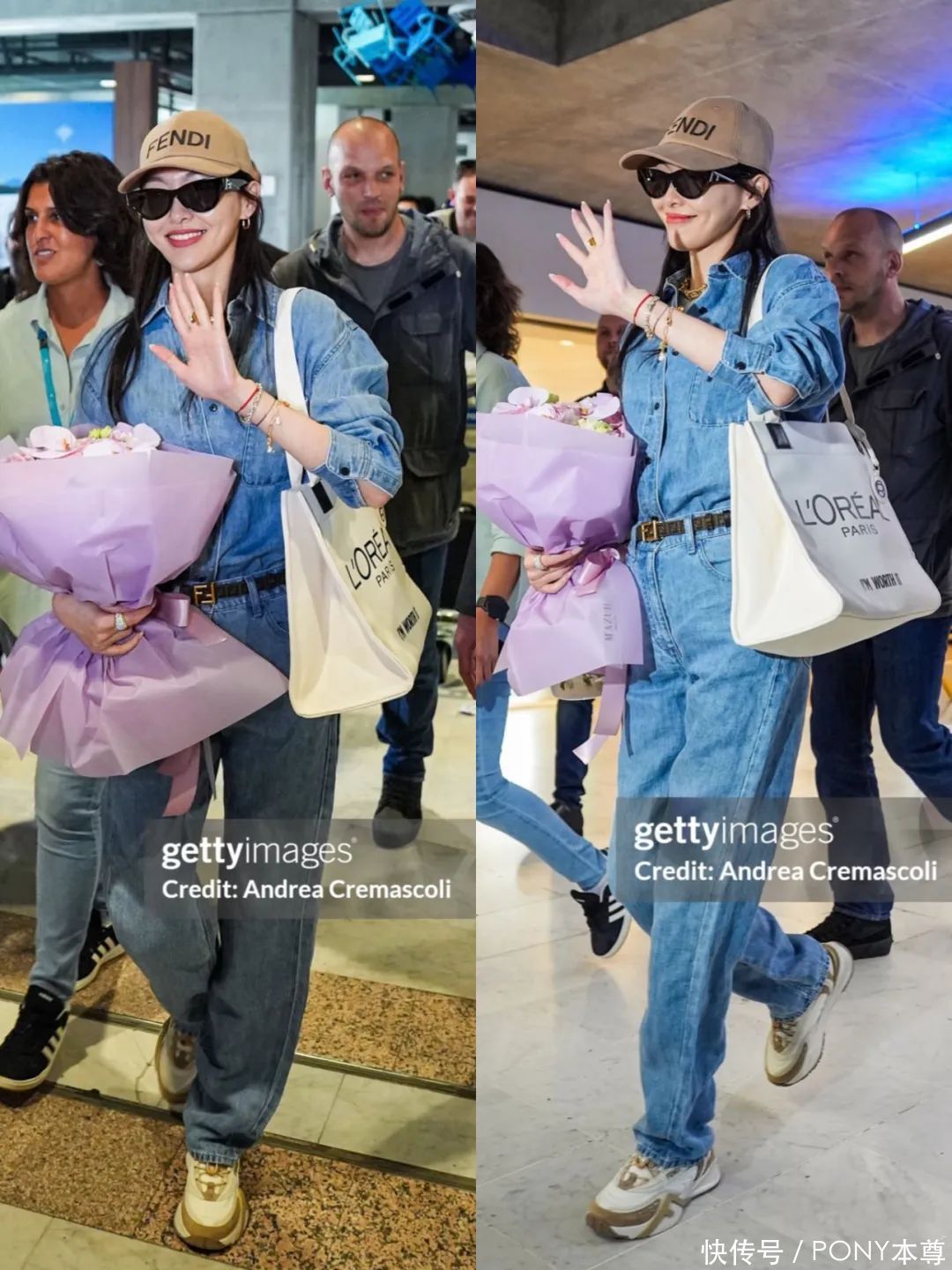 她喜欢牛仔连体衣!浅蓝色的长袖牛仔连体衣,搭配卡其色棒球帽,脚踩畅通鞋,背一款帆布包也很范儿!