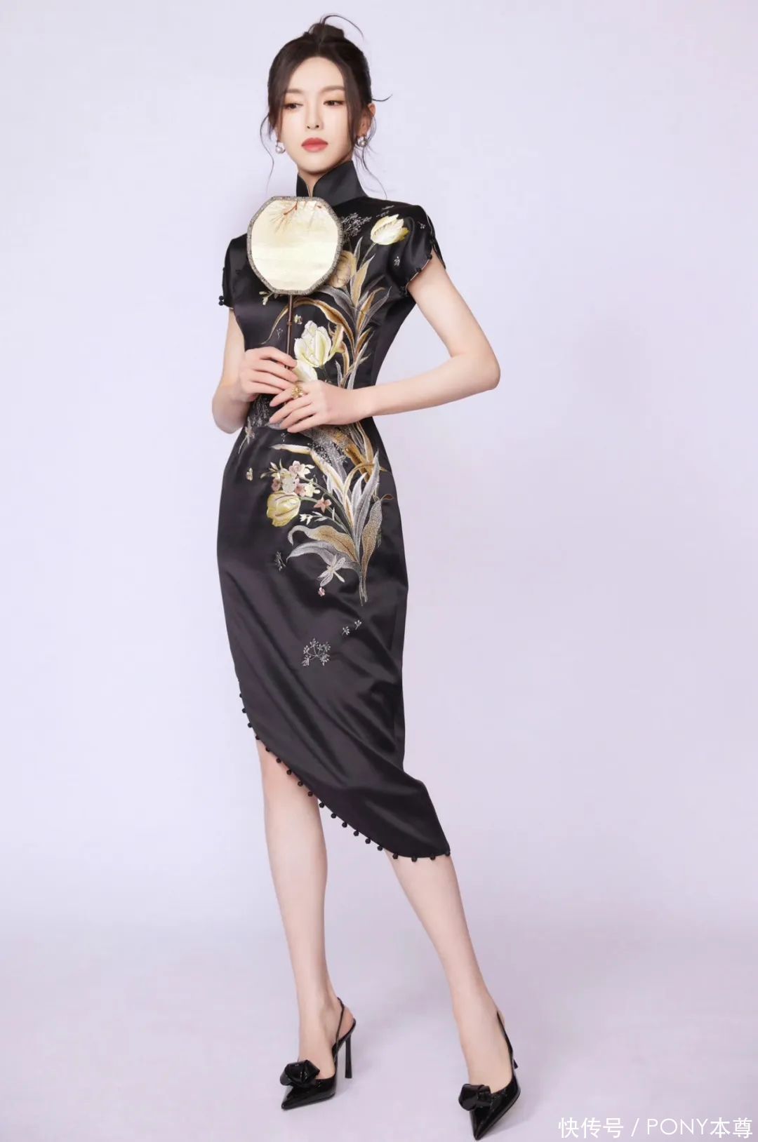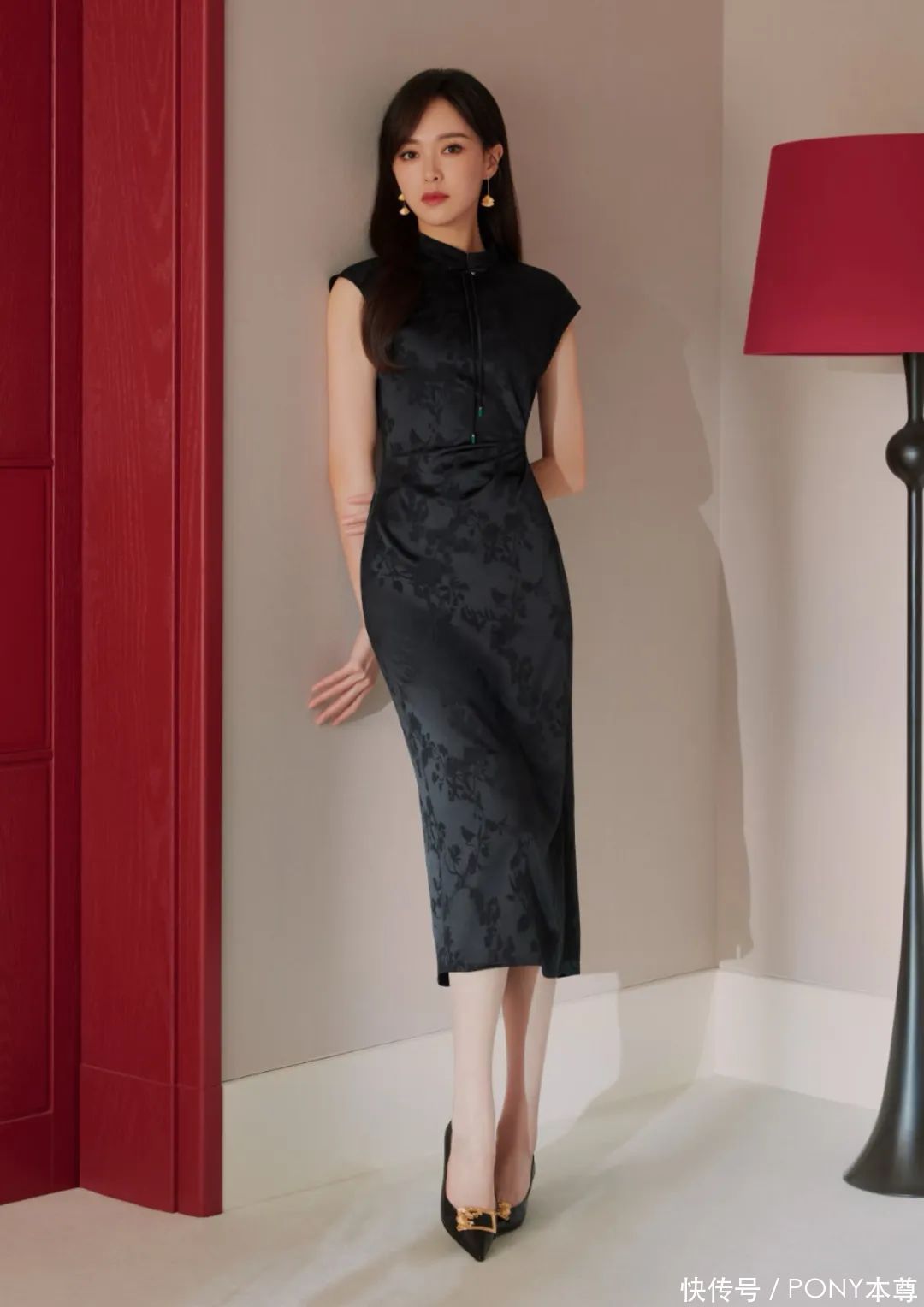 愈加显体魄的玄色新登科旗袍裙,搭配高跟鞋,仿佛回到民国期间!