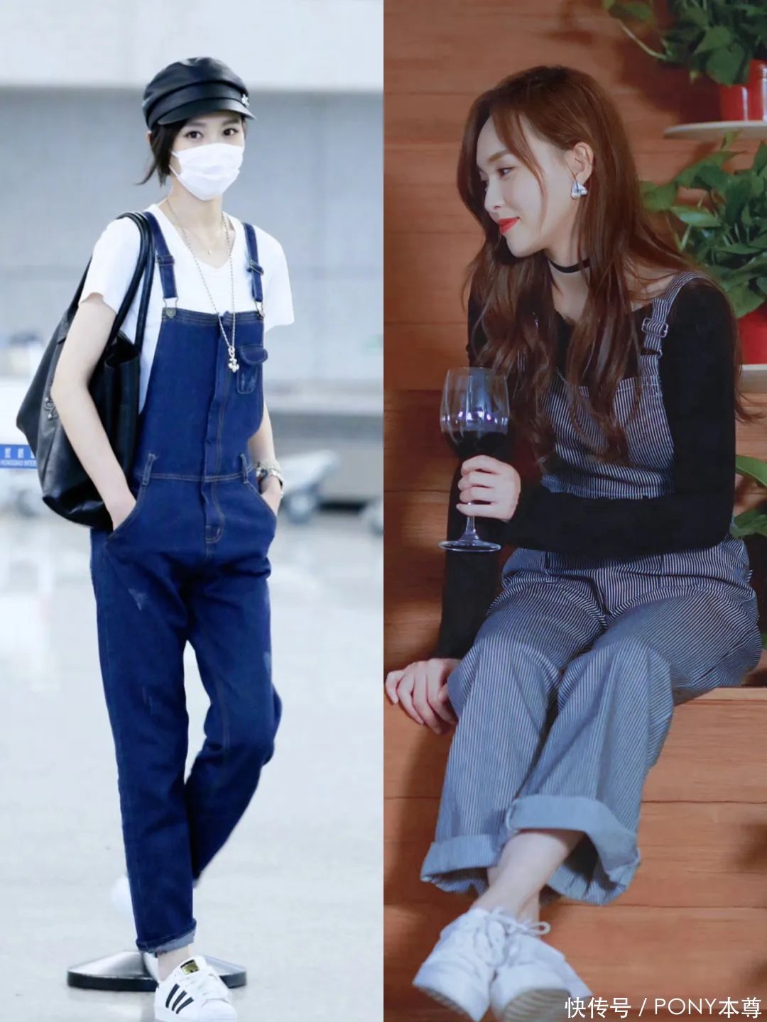 她早期也很喜欢背带裤,比如蓝色背带牛仔裤搭配白色T恤,蓝色竖条纹背带裤搭配深蓝色真挚T恤!